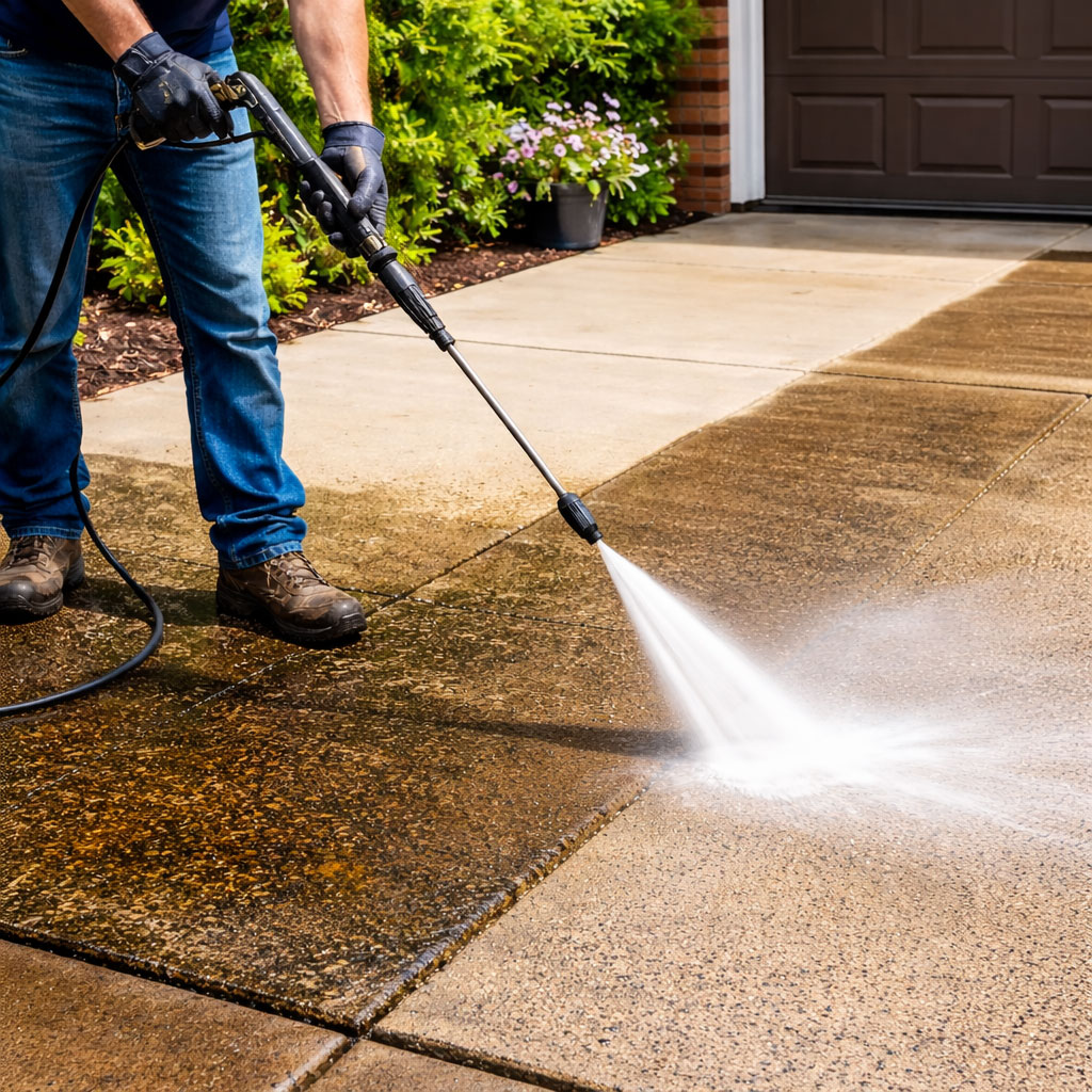 Ideal for durable surfaces such as concrete, brick, and stone. This method effectively removes deep-seated dirt, grease, and stains.